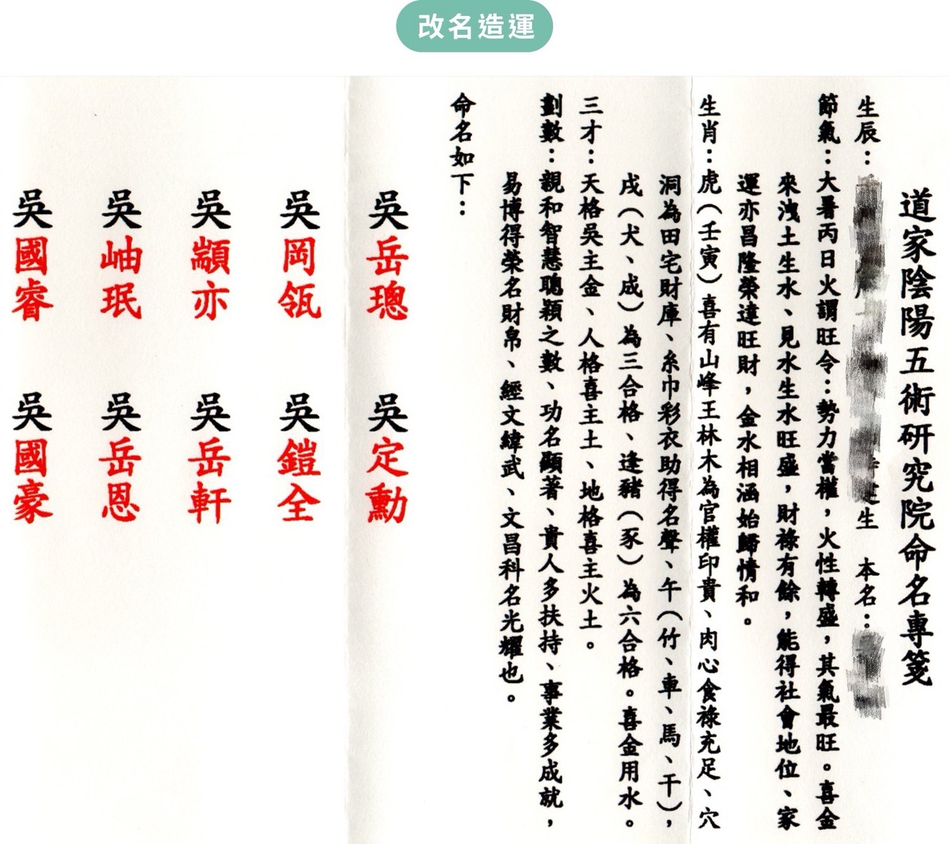 改名需要提供:原名、國曆生辰年月日時辰、改名目的或特殊需求指定(例如婚姻、事業、財運、健康或全 選)。註明有無喜用字或喜好風格,就可以交付作業。
