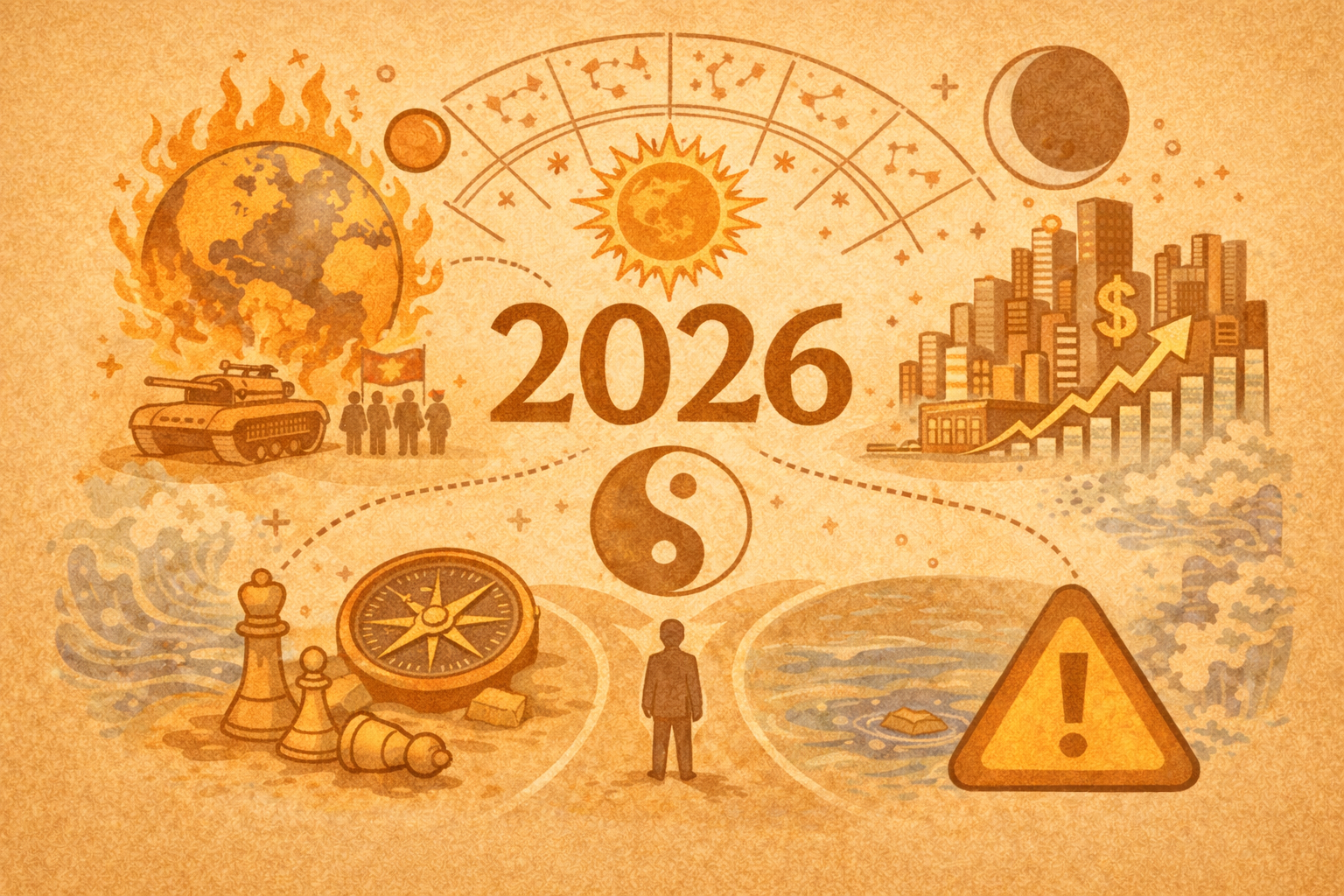 2026 為火氣偏旺之年,火主變動、權力、速度、衝突與突破。火旺之時,世界容易出現: