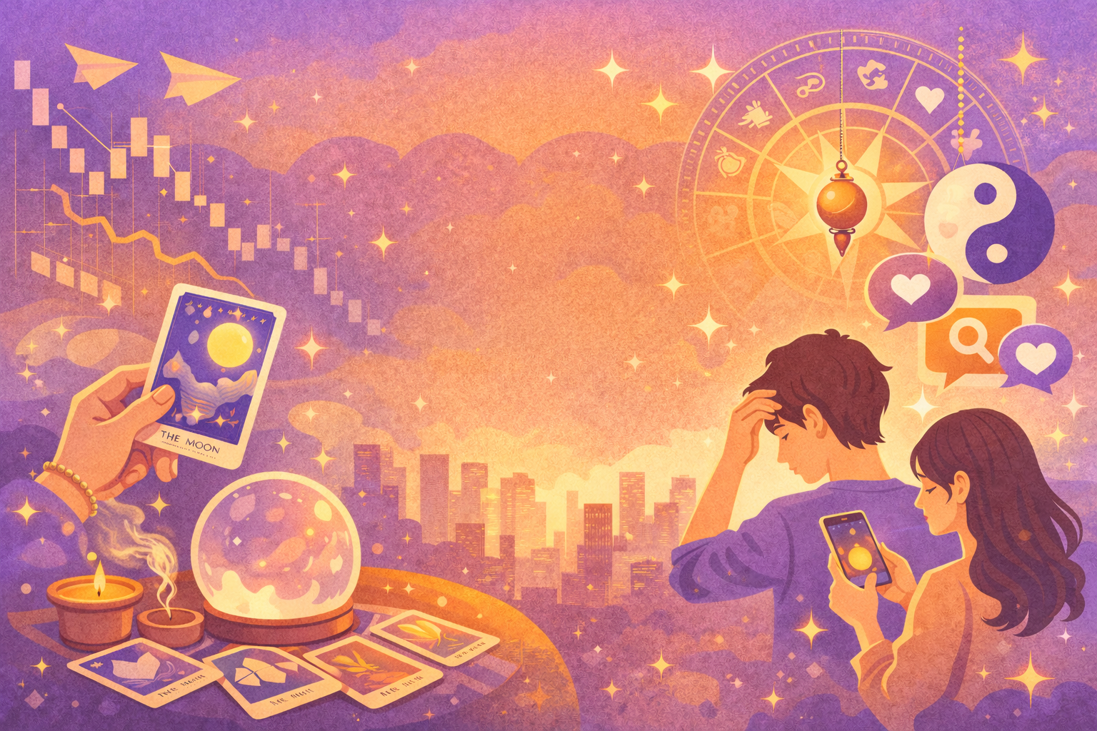 現代社會變動快速,房價、升學、就業競爭加劇,尤其是 Z 世代與千禧世代,更容易產生不確定感。這種焦慮催生了新的心理依靠,命理正好提供了情緒出口與心靈指引。例如,在中國、台灣及東南亞,越來越多年輕人透過線上塔羅牌占卜、算命直播或命理社群,嘗試找到生活方向與心理安定。